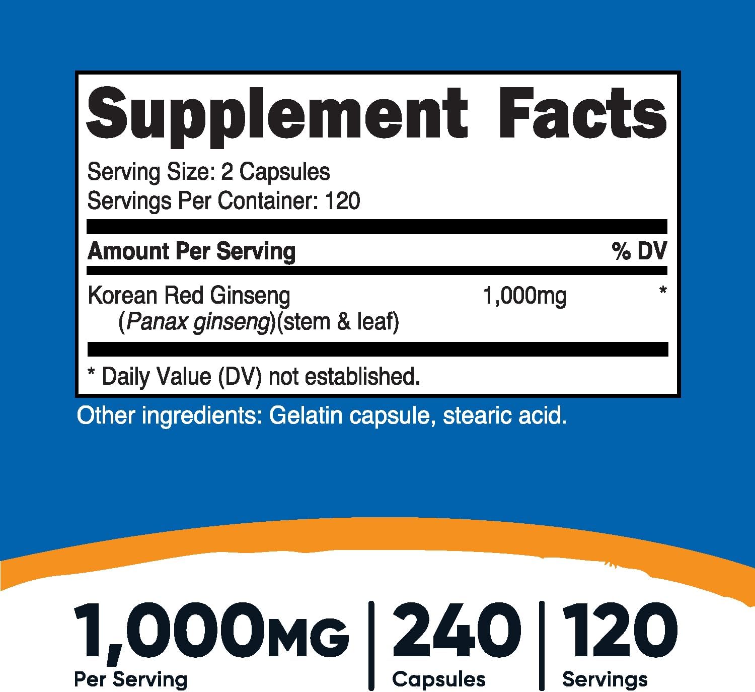 - Nutricost Korean Red Ginseng Capsules 165.00 د.لإضافة إلى السلة