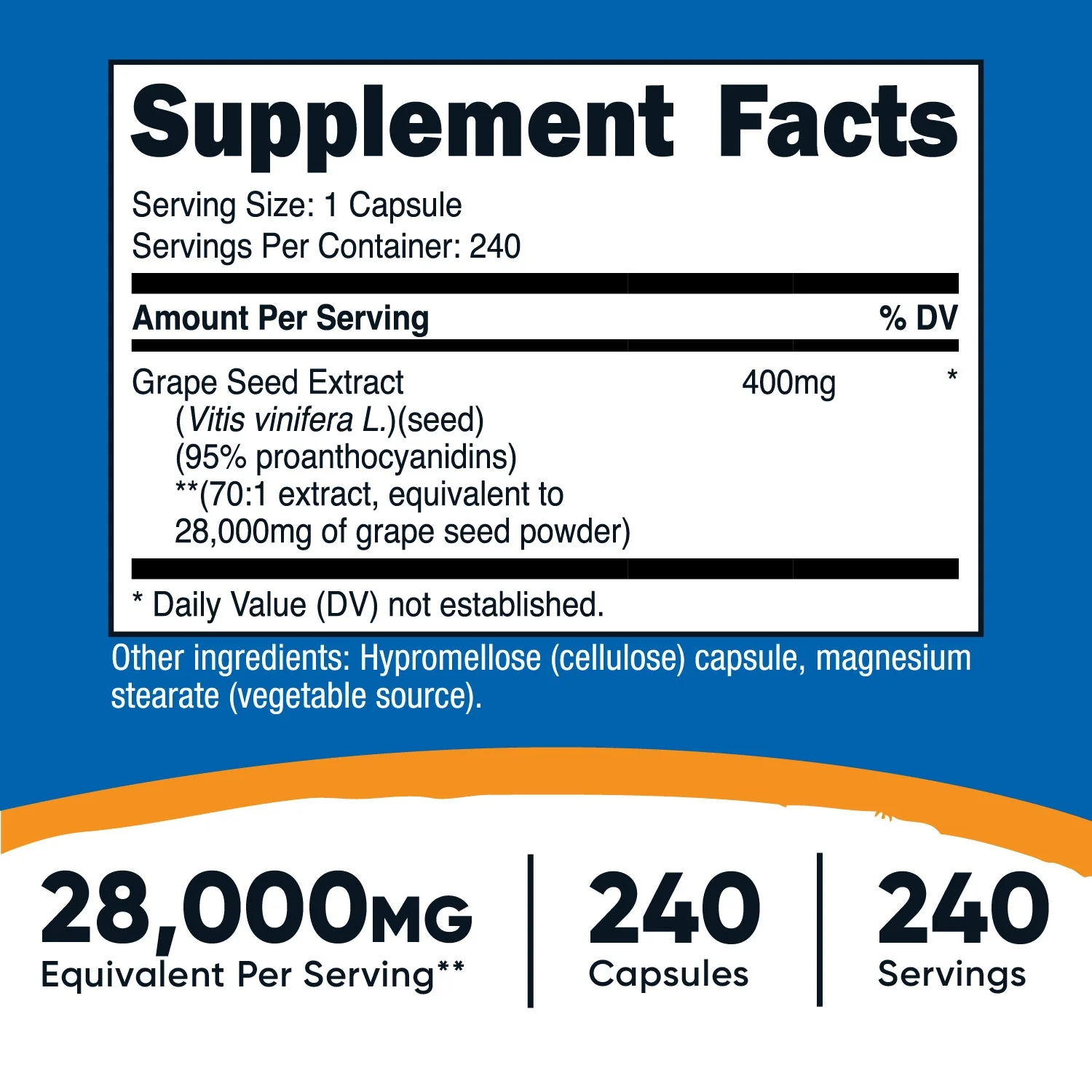 - 28,000 ملغم من مستخلص بذور العنب لكل حصة