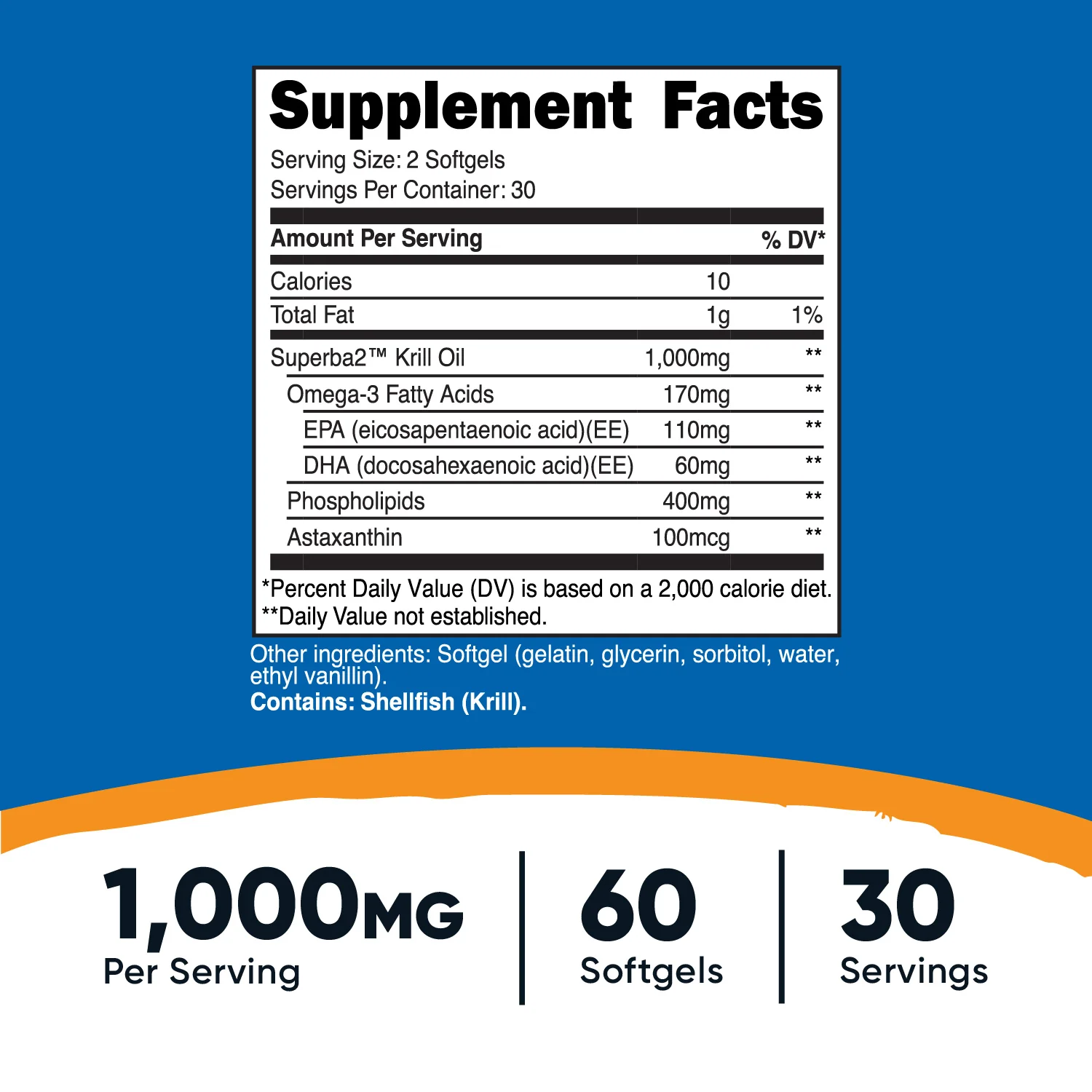 - كبسولات هلامية من زيت الكريل عالي الفعالية: 1000 ملجم لكل جرعة (500 ملجم لكل كبسولة)